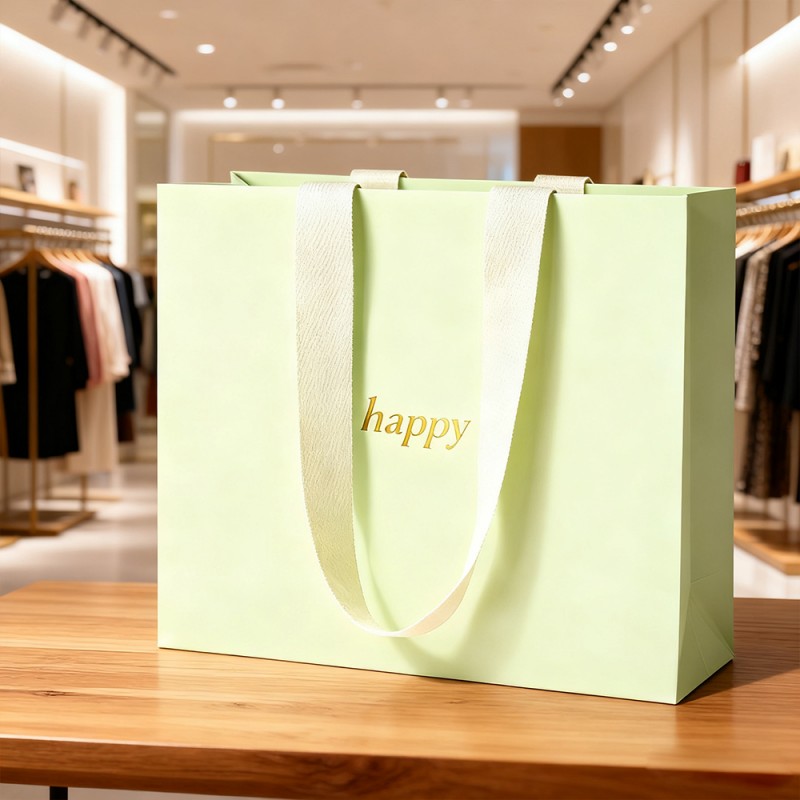 Környezetvédelmi, tartós és újrafelhasználható jellegű, közepes vastagságú nátronpapírt választunk, amely esztétikus és tartós is egyben. A nátronpapír eredendő szilárdsága erős és szakadásálló hordozót biztosít. Igény szerint vízálló belső réteg is hozzáadható a belső réteghez. Ízlés szerint választhat szalagfogantyúkat vagy papírkötelet. A termék típusától függetlenül ingyenes felszerelésünk és műszaki csapatunk gondoskodik arról, hogy nátronpapír-ajándéktáskája újrafelhasználható tartozékká váljon, növelve ezzel a márka bejelentési arányát és mobil hirdetőtáblává.