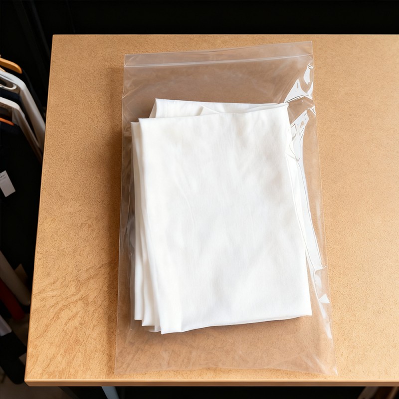 Ruházatvédelem: PE zsákjaink megbízható gátként szolgálhatnak a gyakori szennyeződésekkel szemben. Hatékonyan megakadályozzák a por, szennyeződés és nedvesség bejutását tárolás és szállítás során. Ez biztosítja, hogy a ruházat a finom selyemtől a frissítő pamutingekig, a raktáraktól az ügyfelek kezéig tisztán és rendben tartható. Jó láthatóság: A polietilén anyag átlátszósága kiváló termékláthatóságot biztosít. Teljesen bemutatja a ruhák színét, textúráját és dizájnját, és segít gyorsan azonosítani a készletet anélkül, hogy minden táskát kinyitnának. Nem nyomtatott felület: Mivel nincs nyomtatás, nem kell attól tartani, hogy a tinta szennyezi a terméket, ami kiküszöböli a csúnya foltok vagy nyomok kialakulásának kockázatát a terméken. Ügyeljen arra, hogy a csomagolásból kibontva hibátlanul nézzenek ki. Ez a funkció döntő fontosságú a fehér, világos színű vagy nagy értékű ruhák esetében. Az ügyfelek más módszereket is alkalmazhatnak a termékek megkülönböztetésére az igényeik szerint. Eladó univerzális csomagolásként is használható. Tartós és ütésálló: Könnyű textúrája ellenére a PE anyag kiváló szilárdsággal és szakítószilárdsággal rendelkezik. Ellenáll a szigorú kezelési, csomagolási és szállítási követelményeknek, csökkenti a zacskó sérülésének kockázatát, és biztosítja termékei biztonságát a teljes ellátási láncban. Gazdaságilag hatékony és könnyű: Ezek a táskák egyensúlyt teremtenek a teljesítmény és a gazdaságosság között. Könnyebb súlyuk csökkenti a szállítási költségeket, így gazdaságilag bölcs választás lehet minden méretű vállalkozás számára, a kis butikoktól a nagy gyártókig. Testreszabható méretek és egyszerű lezárás: Bármilyen méretben testreszabható, minden termékhez alkalmas, a zokniktól és kiegészítőktől a teljes hosszúságú ruhákig és kabátokig. Ezek a zsákok tekercsben szállíthatók nagy sebességű automatikus csomagoláshoz, vagy egyedi zsákokként kézi használatra. Biztonságos, öntapadó kétoldalas ragasztószalaggal rendelkeznek a gyors és egyszerű lezárás érdekében.