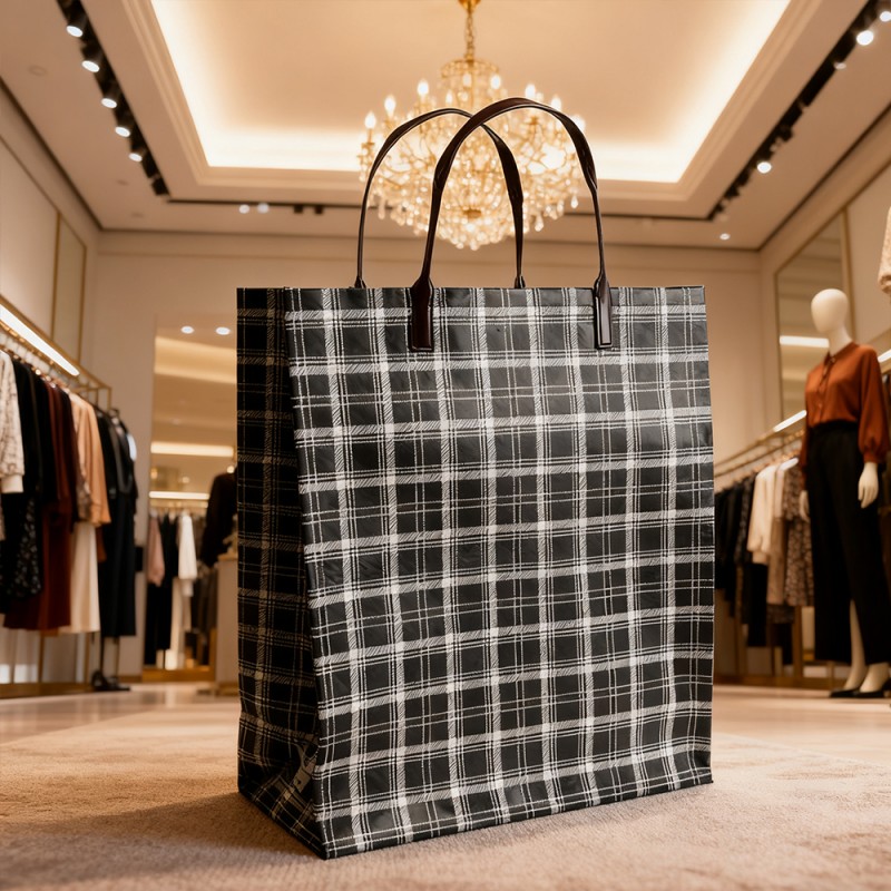 Kiváló minőségű anyagszerkezet: 100% tisztaságú BOPP és PE anyagokból készült, megerősített laminált anyagok felhasználásával a tartósság és az élettartam növelése érdekében. Ne használjon más ragasztót vagy kétoldalas szalagot. Vízálló és szakadásállóság: Az egyedülálló tömítési eljárás teljes szivárgásmentes teljesítményt biztosít az alján, a PE anyag pedig kiváló szakadásállóságot biztosít. Nyomtatási teljesítmény: A sima és sima felületek kiváló minőségű mélynyomtatást és szitanyomást tesznek lehetővé, élénk színkifejezéssel. Környezetbarát tervezés: Az újrafelhasználható és újrahasznosítható szerkezetek támogatják a fenntartható csomagolási kezdeményezéseket. Kiváló markolat: A kifejezetten ehhez tervezett fogantyú kényelmes fogást biztosít és könnyen hordozható. Megfelelő kapacitás: A kis ajándékméretektől a nagy bevásárlótáskákig a méretek testreszabhatók az ügyfelek igényei szerint. Testreszabható lehetőségek: A nyomtatás testreszabható az ügyfelek igényei szerint, hogy megfeleljen a márka igényeinek.