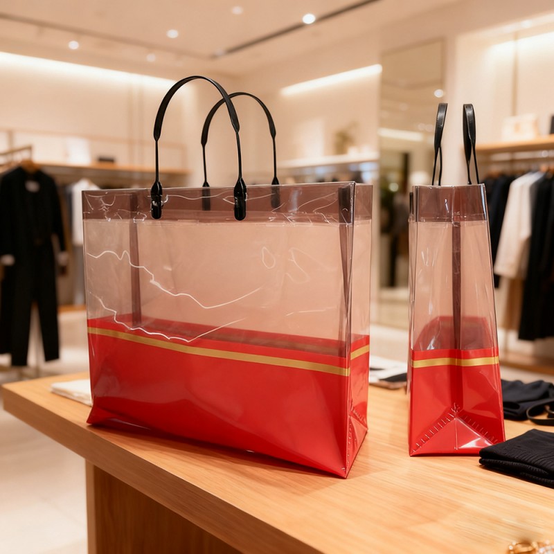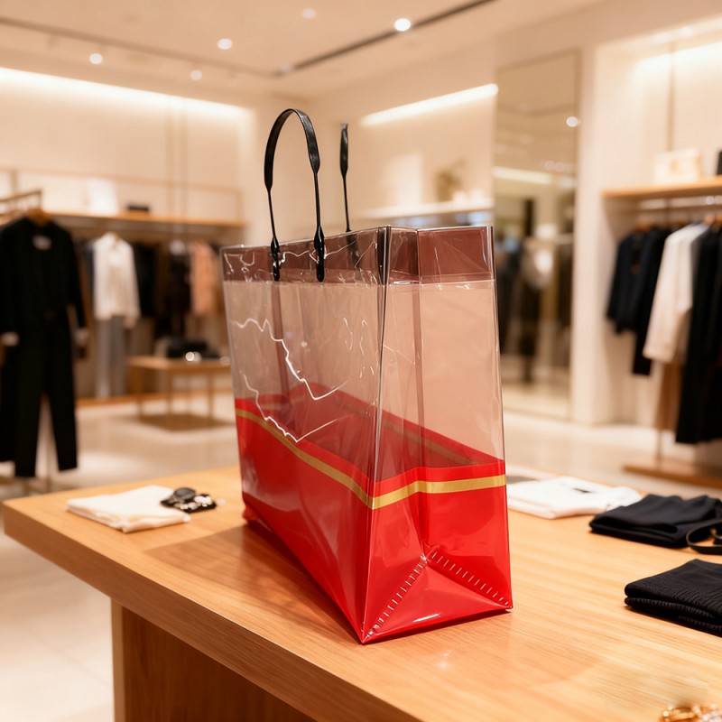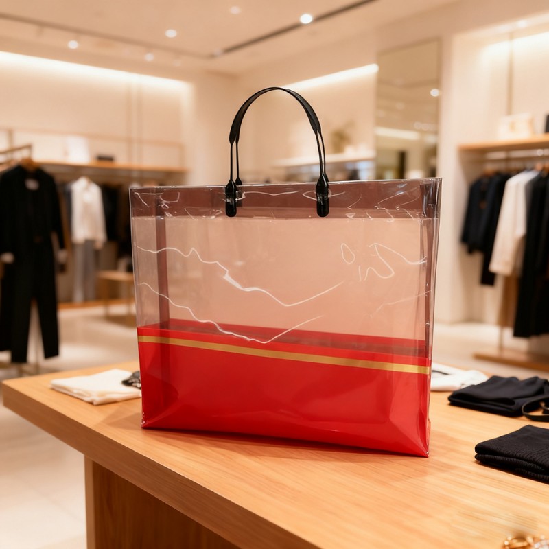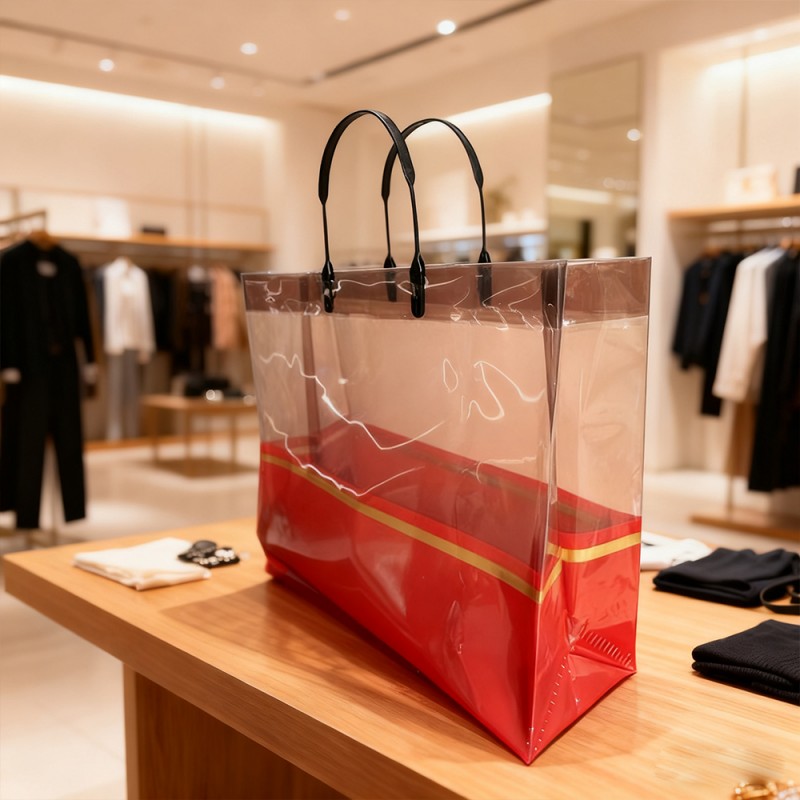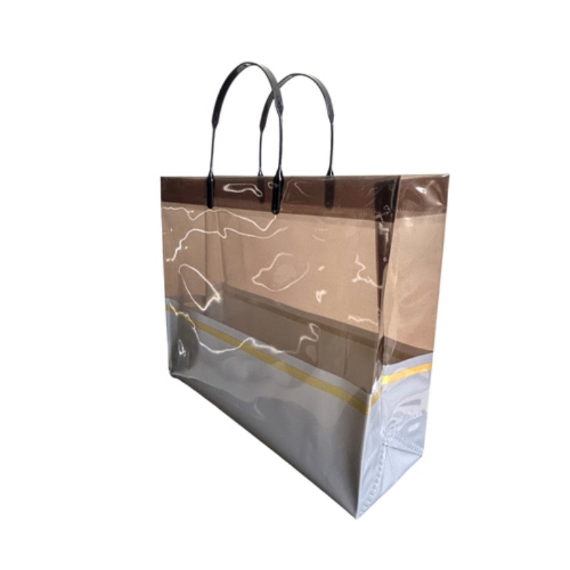 Retail & Fashion Boutiques: Ideális luxus bevásárlótáskaként ruházati cikkek, kiegészítők és kozmetikumok számára. Prémium megjelenése révén fokozza a márka észlelt értékét és javítja a vásárlói elégedettséget. Vállalati ajándékozás és rendezvények: Tökéletes ajándékcsomagok, promóciós cikkek vagy rendezvények ajándéktárgyainak csomagolására. Az aranypántos díszítés összhangban van a csúcskategóriás márkák témájával, így alkalmas vállalati promócióra. Napi használat és utazás: Könnyű és összecsukható, a táska stílusos társként szolgál bevásárlófuttatásokhoz, tengerparti kirándulásokhoz vagy hétköznapi kirándulásokhoz. Átlátszósága lehetővé teszi a tartalom egyszerű azonosítását és kényelmes napi használatot. Kiállítások és kereskedelmi bemutatók: Márkaelemekkel testreszabott sétáló reklámként működik, anyagok vagy minták terjesztése közben felkelti a figyelmet. Segíti a márka láthatóságát és a potenciális ügyfelekkel való kapcsolatteremtést.