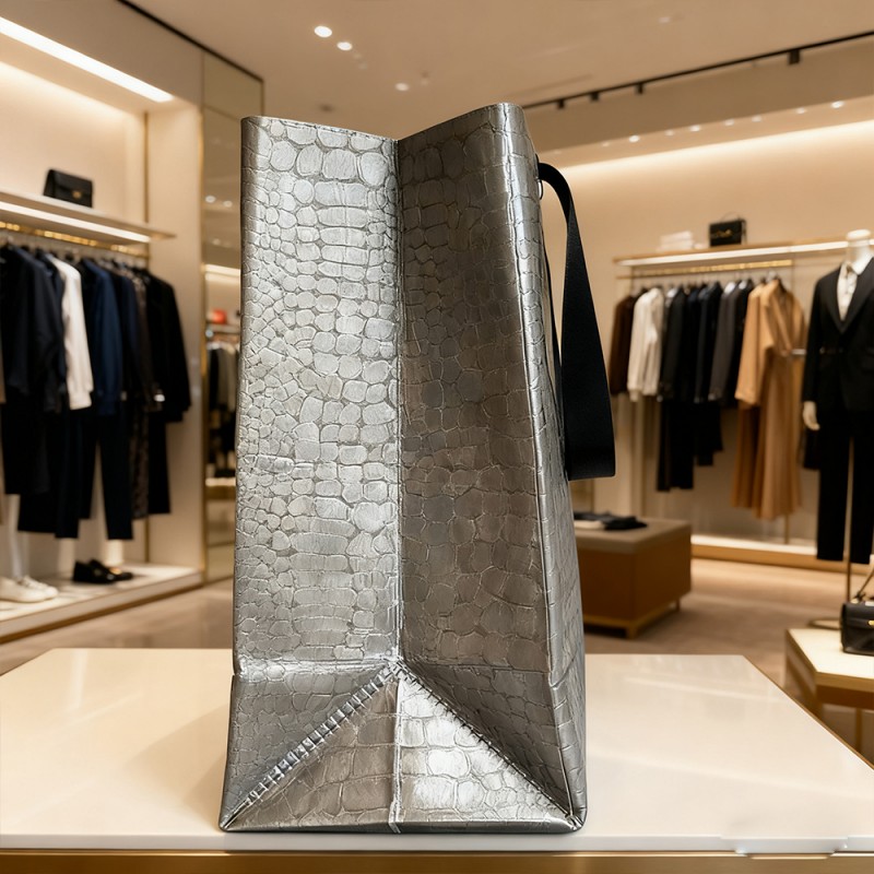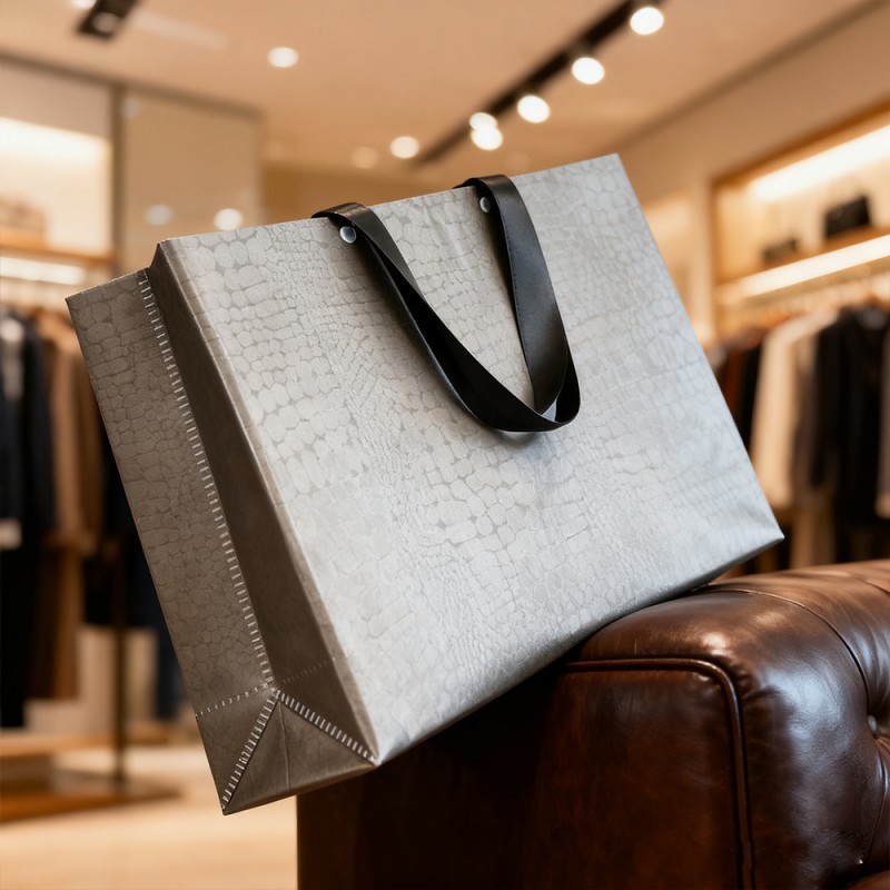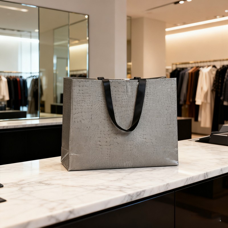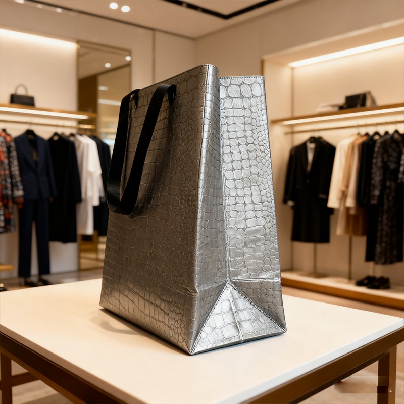 Elegáns felületkezelés: A VCM réteg csúcsminőségű bőrszerű felületet hoz létre, sima tapintással és vizuálisan feltűnő megjelenéssel. Magas fényű vagy matt felülettel rendelkezik, amely azonnal a luxus érzését sugározza. Kiváló tartósság: Kiválóan ellenáll a karcolásoknak, kopásnak és napi kopásnak. Ez biztosítja, hogy a termék hosszú ideig az eredeti állapotában maradjon, így a táska nagyon újrafelhasználható. Vízálló és nedvességálló: Ez a termék hatékonyan megakadályozza a túlfolyást, a nedvességet és a nedvességet, kiváló védelmet biztosítva a tartalomnak. Kiváló nyomtathatóság: A tökéletesen sima VCM felület ideális vászon nagy felbontású nyomtatáshoz. Ofszet-, mélynyomó- vagy szitanyomási technikákat használ, hogy kivételesen tiszta, élénk és színes reprodukciót biztosítson logóinak és műalkotásainak. Személyre szabott testreszabás: A másodlagos folyamatokkal, mint például a forró fóliabélyegzés (arany, ezüst) és a szitanyomás, tovább javíthatja a tervezést. Ezek az opciók tapintható és multiszenzoros dimenziót adnak márkájához. Tartós szerkezet: A teljes szerkezet biztosítása érdekében nagy szilárdságú, szakadásálló anyagokat használunk. A fogantyú ultrahangos préselés révén tökéletesen integrálódik a termékbe, megbízható szilárdságot biztosítva a nehezebb tárgyak szállításához. Praktikus újrafelhasználhatóság: A tartósság és az időtlen kialakítás kombinációja arra ösztönzi az ügyfeleket, hogy a táskákat újra használják mindennapi életükben. Ezzel a csomagolása tartós marketingeszközzé válik, amely az első vásárlás után még sokáig népszerűsíti márkáját.